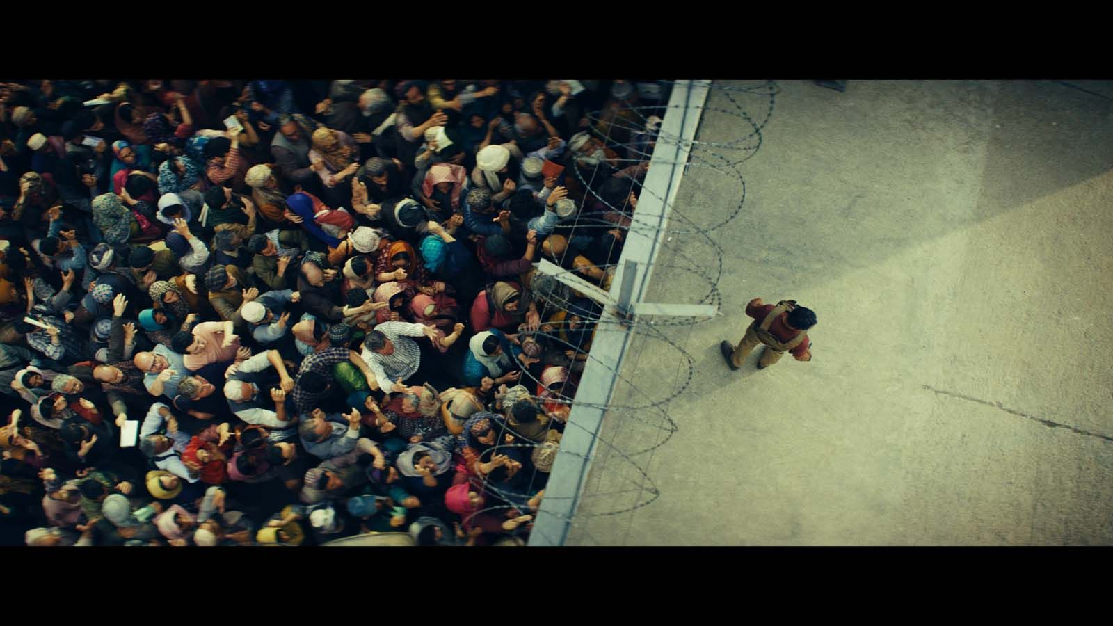 La mise en scène va permettre de montrer le débordement par cet amas d’être humains coincés aux portes de la liberté. Bourboulon va utiliser des vues zénithales ainsi que le débordement de la population afghanes sur la symétrie du cadre, prenant les 3/4 de l’image face au dernier quart des français ne pouvant sauver tout le monde, dépassé par la situation. De plus, une autre puissance : les médias personnifiés par Kate (Sidse Babett Knudsen), vont également ne pas être de taille face à cette impuissance à laquelle les français font face.