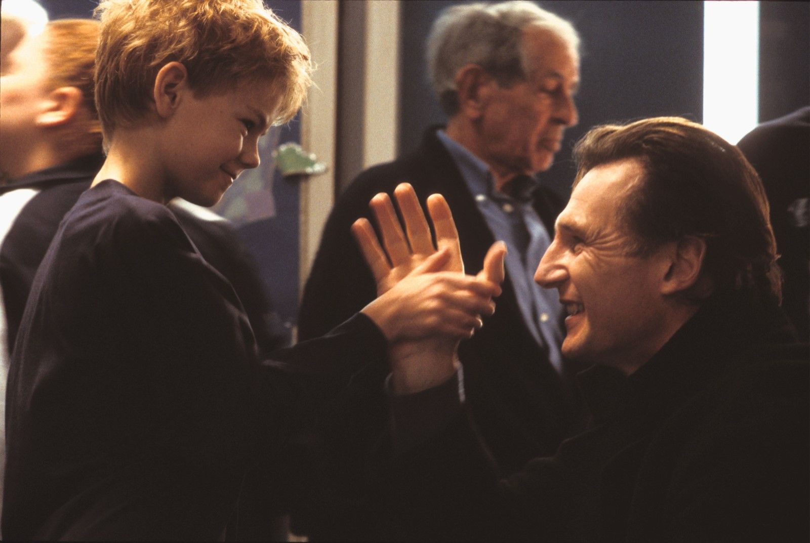 L’histoire de Daniel et Sam, le beau-père qui doit s’occuper du jeune fils de sa femme récemment décédée, est probablement la plus mignonne et réaliste du lot, et se passe entièrement dans le mois suivant l’enterrement de celle-ci. Un peu rapide ? Invraisemblable ? Et en plus il tombe sur le sosie de Claudia Schiffer à la fin… Hmmmmm… Ok.
