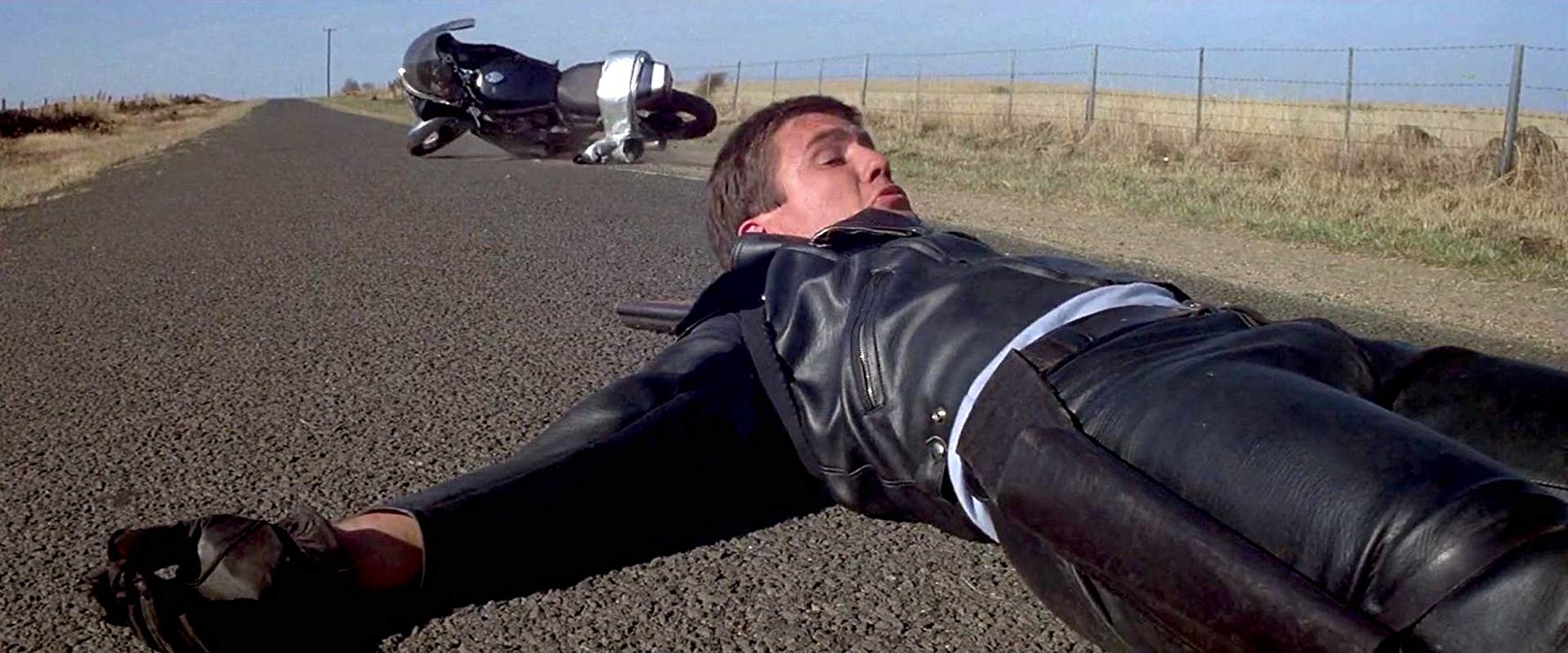 Le film s’ouvre sur une course effrénée entre l’Aigle de la Route, un prisonnier de haute sécurité qui s’est évadé et a pris fuite à bord d’un véhicule Interceptor ultra rapide dérobé à la police, et les membres des forces de l’ordre locales dans une Australie rurale qu’on sent au bord de la ruine et du chaos. Mais c’est compter sans Max (Mel Gibson à 21 ans!), jeune policier pilote d’élite, membre avec son meilleur ami et co-équipier Goose (Steve Bisley) de la brigade sous équipée et sous financée, survivant tant bien que mal et se présentant manifestement comme un des derniers vestiges de la civilisation. Le héros est présenté, il se lance à la poursuite de l’Aigle de la Route, et après une poursuite endiablée sur les routes désertes de l’outback, tout se termine dans une grande explosion qui transforme le criminel fou furieux en chaleur et lumière. Menace éliminée, tout le monde est content et rentre au commissariat en souriant. Mais voilà… l’aigle de la Route n’était pas seul! Un gang de motards bandits de grands chemins dirigés par Le Chirurgien (Hugh Keays-Byrne), frère du criminel calciné, se lance dans une quête revancharde à la recherche des officiers responsables du décès, en se promettant de les éliminer un à un dans des souffrances terribles! Le gang rattrape d’abord Goose et l’immole en souvenir de l’Aigle de la Route, puis s’en prend à la femme et au bébé de Max, les passant à la moulinette sous les roues d’une trentaine de motos rugissantes, abandonnant leurs cadavres sur l’asphalte brulant afin que Max en larmes les découvre, et comprenne bien que ses heures sont comptées. Poussé à bout par le désespoir et le chagrin, Max pète une durite, s’empare d’un Interceptor spécial, bolide expérimental à peine terminé équipé d’un compresseur à azote spécial, et se lance à son tour dans une poursuite vengeresse des membres du gang pour les faire cruellement payer…